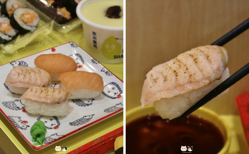 鮭魚愛好者的我立馬就勾選鮭魚系列壽司,還特別各選生鮮&炙燒吃吃兩款差異,