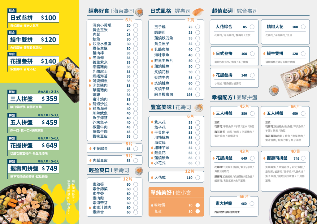 【菜單】豐富品項組合、單點套餐拼盤任你選