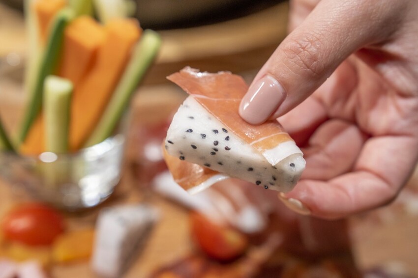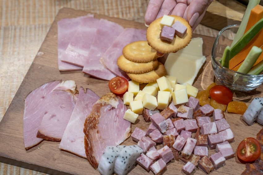 一盤可以品嚐到西班牙24個月伊比利風乾火腿、法國拜恩生火腿,