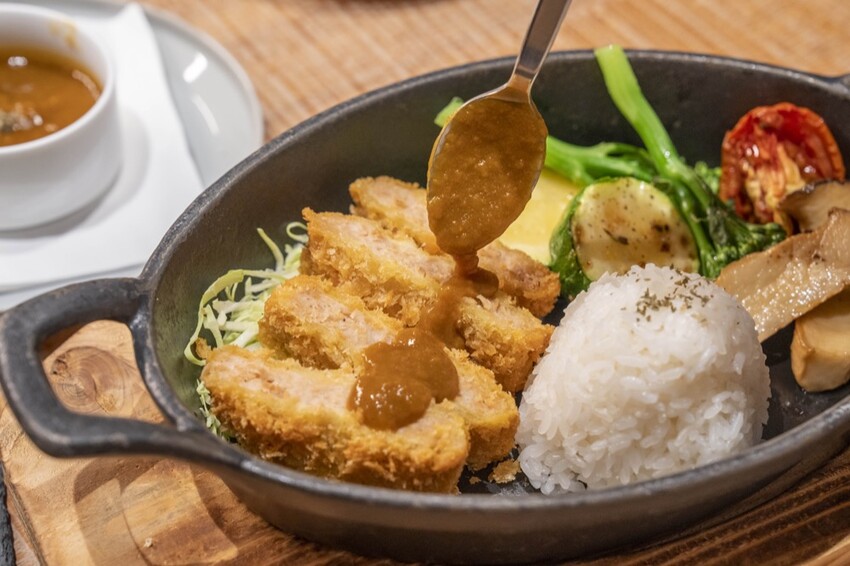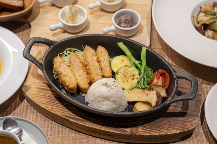 植物肉料理也可以很創新!台灣植物肉品牌 NO MEATING 一植肉在今年二月聯手臺北市立動物園共同推動石虎保育活動,並與五家餐廳合作推出期間限定的石虎保育聯名植物肉餐點,其中肉料理專家 RÒU by T-HAM也是這次合作的對象之一,這次RÒU by T-HAM特別推出咖哩植物肉漢堡排飯,多汁的口感讓人流連忘返!