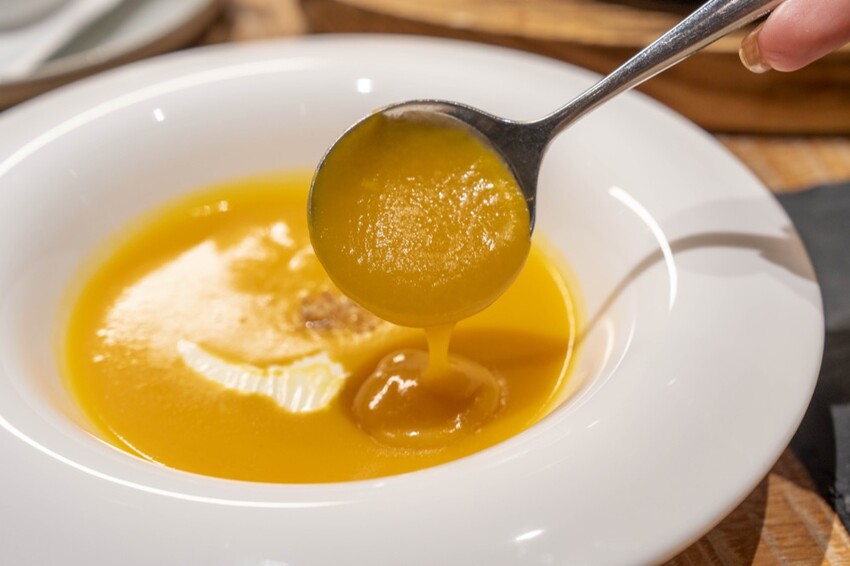 湯品的是堅果南瓜濃湯搭配上手工麵包,南瓜濃湯的部分非常濃郁,可以感受到是真材實料製作而成,麵包吃起來也相當扎實,搭配麵包一起吃很療癒~