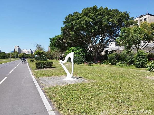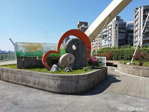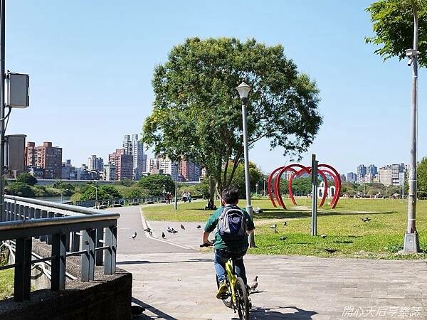 我往古亭河濱公園方向騎去,看到顯眼的古亭河濱公園心型拱門