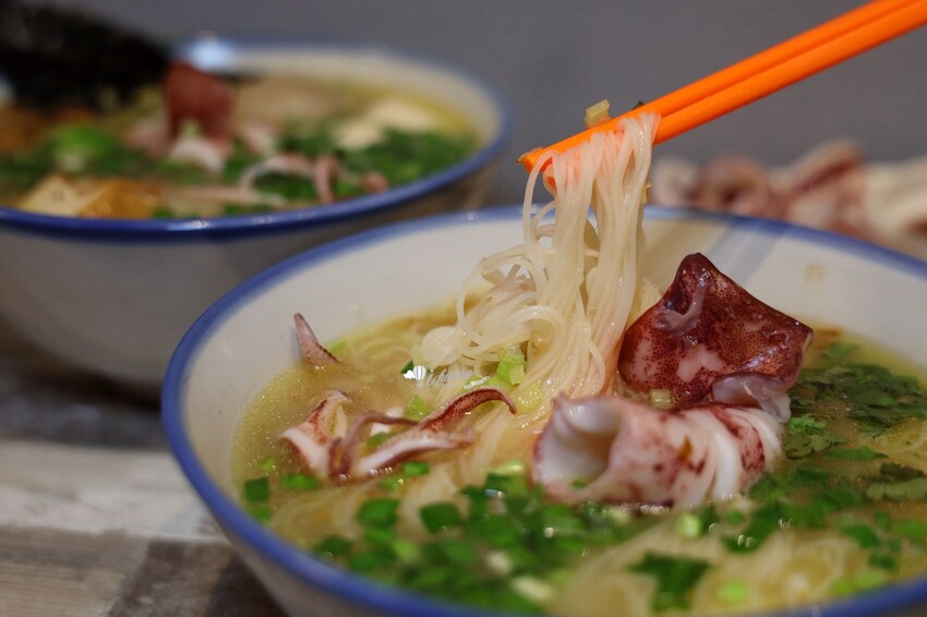 台中西區的澎發號,以雞骨熬成白湯,配以澎湖直送的新鮮小卷,濃香馥郁的雞湯,加上小卷的鮮甜,令人超滿足!