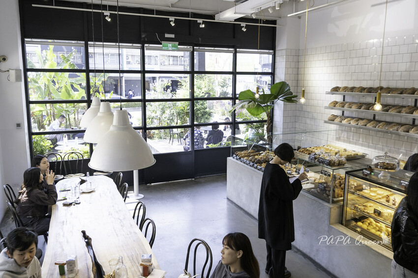 外觀有點類似清水模式建築!工業簡約風格有著自己的露天花園,沒想到下午13:XX 平常日來這裡吃飯喝下午茶的人還真不少!本打算要來這裡買麵包順便吃點下午茶的 只好作罷!