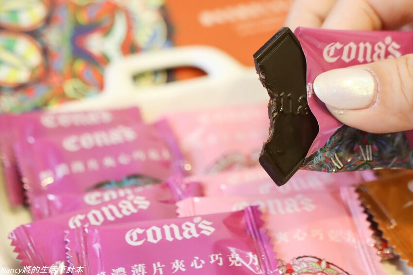不得不說Cona’s 妮娜巧克力開發口味的人,想法真的很多,巧克力絕對不只是單純的巧克力,運用多種食材去碰撞出不同口味的火花也更增添口味的層次感😍