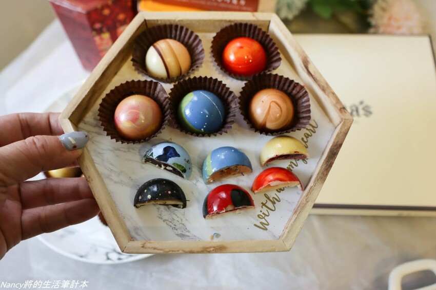 如藝術品般的手繪圖案,讓每一顆星球巧克力略有點不同,一整盒看起來就是超美的