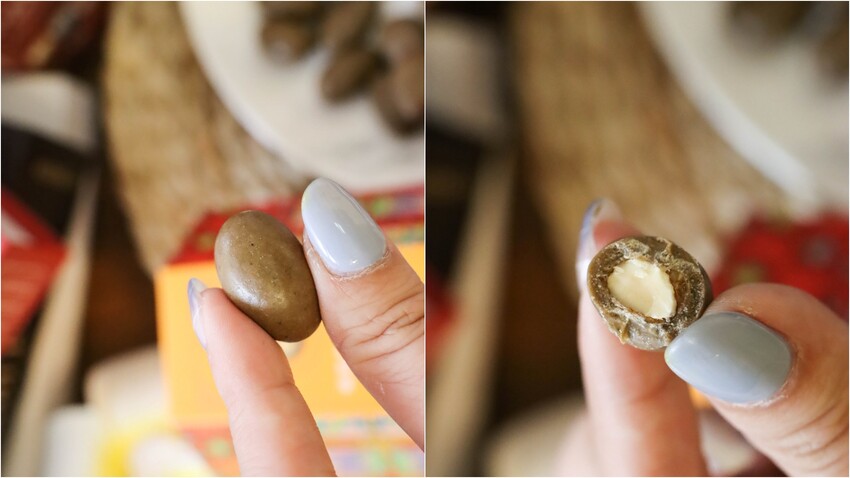 多重層次茶與巧克力香氣再加上手炒海鹽焦糖包裹榛果的堅果香氣,讓人一吃就停不下口阿