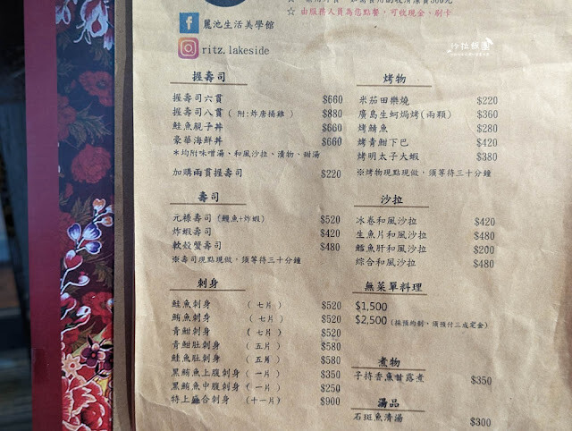 以生魚片司、無菜單料理(需預約)為主,另提供場地租借、文化美學體驗