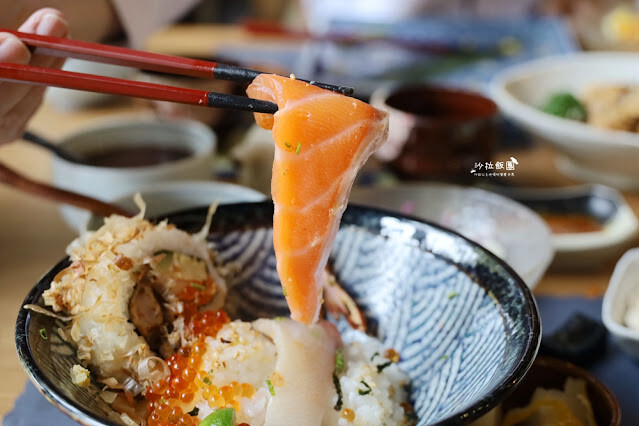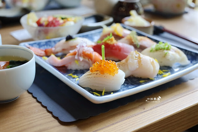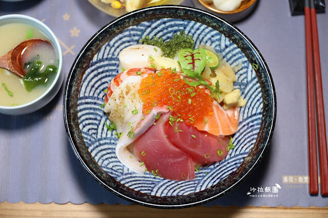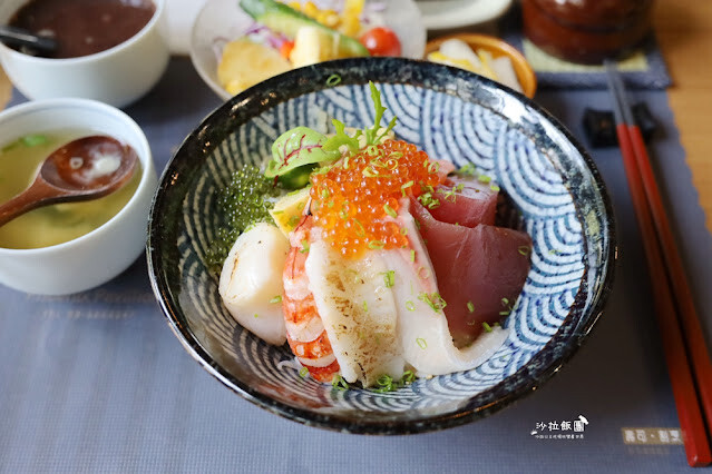 握壽司和丼飯都有附上味噌湯、和風沙拉、漬物、甜湯