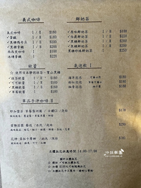 下午茶時段2:00~5:00,提供有拉花的咖啡
