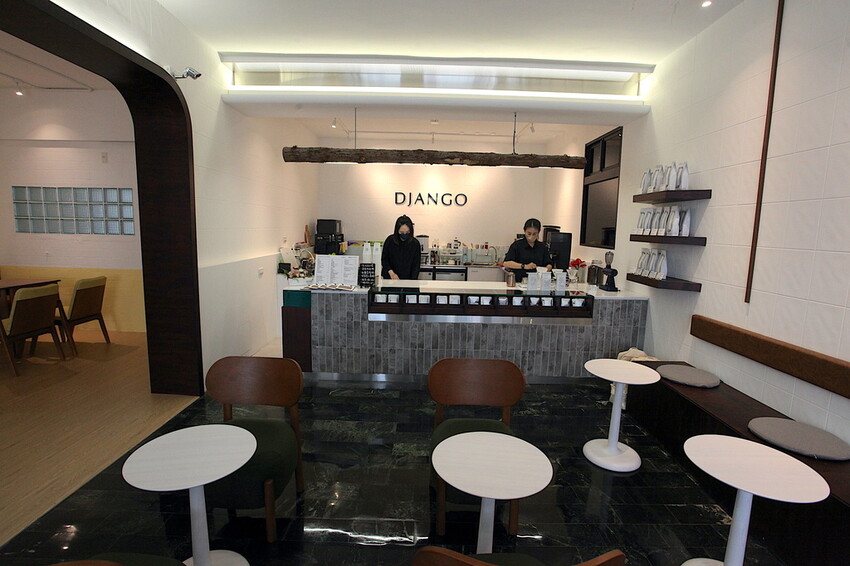 裡面穿著制服員工服務態度極佳,吧台上有擺放咖啡掛耳包供選購。