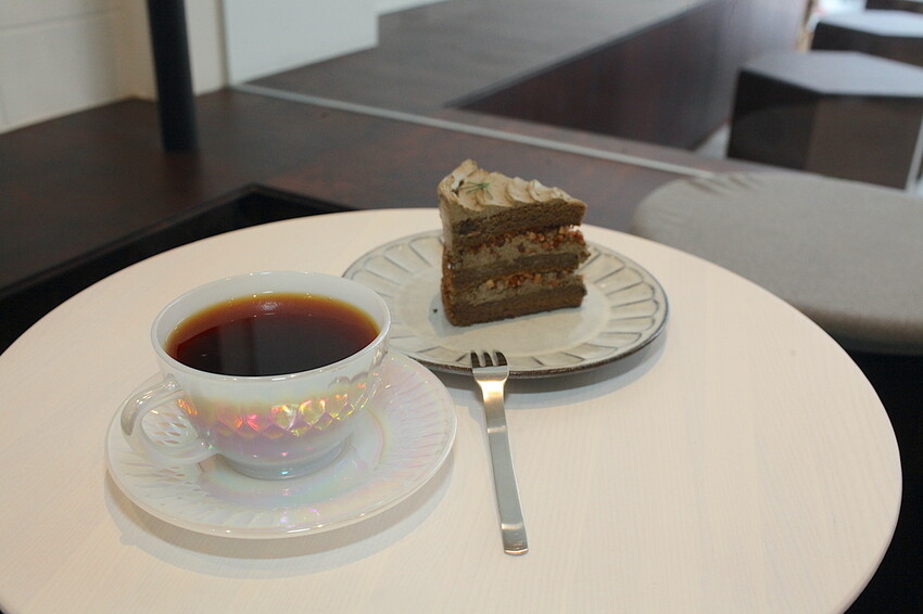 使用日式焙茶來製作出精緻的法式蛋糕,蛋糕很蓬鬆散發出爽口日式煎茶滋味,搭配酥脆杏仁果子真的很好吃