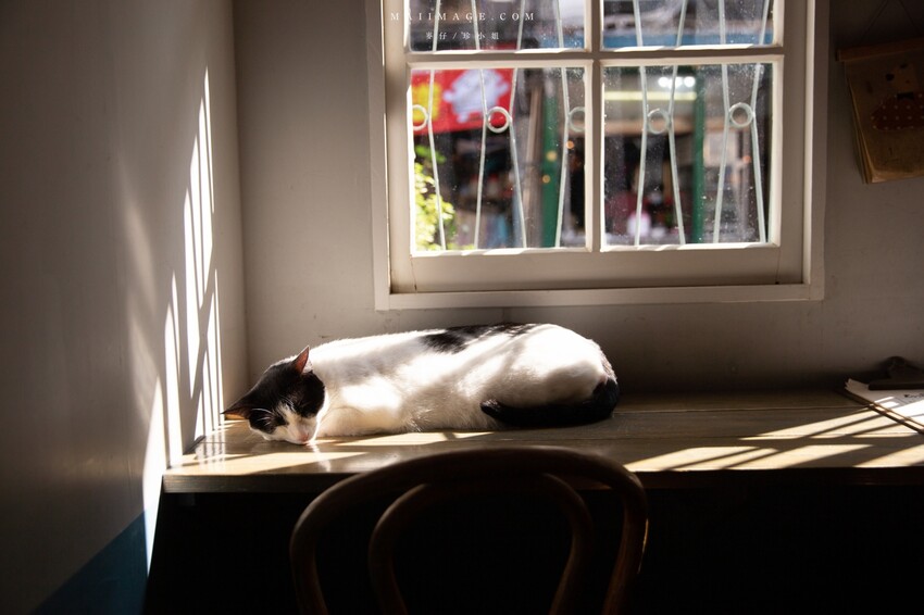 店裡面有兩隻店貓,其中一隻就這樣在這暖暖陽光下舒服的入睡,這畫面好療癒。
