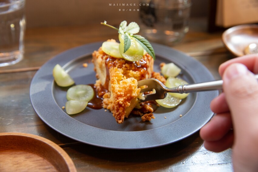 我大推這款溫蛋糕,地瓜香氣濃郁,外酥內軟的口感我超愛。上面淋上邪惡的焦糖,再搭配白葡萄,味道在嘴裡同時化開的感覺真的很討喜。