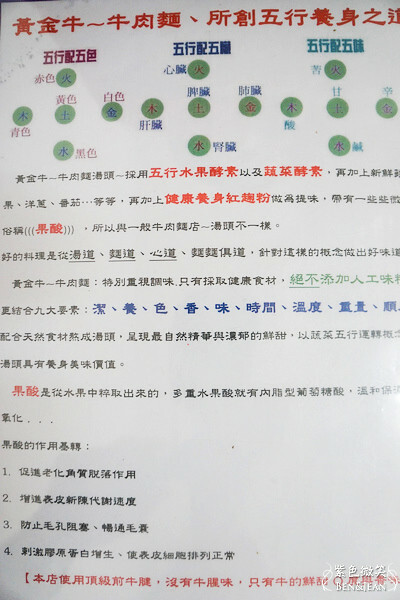 哇哈哈,這擺在桌子下面的說明,真的大開眼界了,一碗小小的牛肉麵也有這麼大的學問,還講究五行之道呢