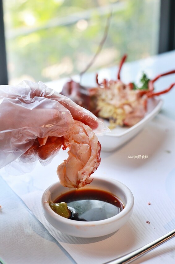 我們先吃起清蒸龍蝦,這新鮮食材吃得到,龍蝦肉色雪白滑嫩,最原始的鮮味呈現,肉質甜美Q彈讓我們沾起哇沙米時,豎起大拇指說讚啊!