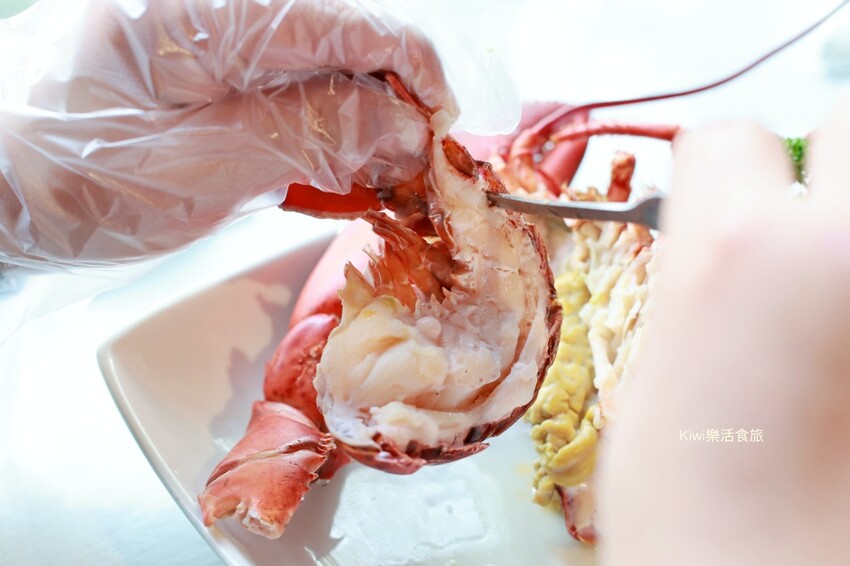 看看這大龍蝦鉗讓我們也使出吃奶的力氣才得以夾斷吃到裡面的龍蝦肉,美味到任何一口龍蝦肉都不想放過呀!