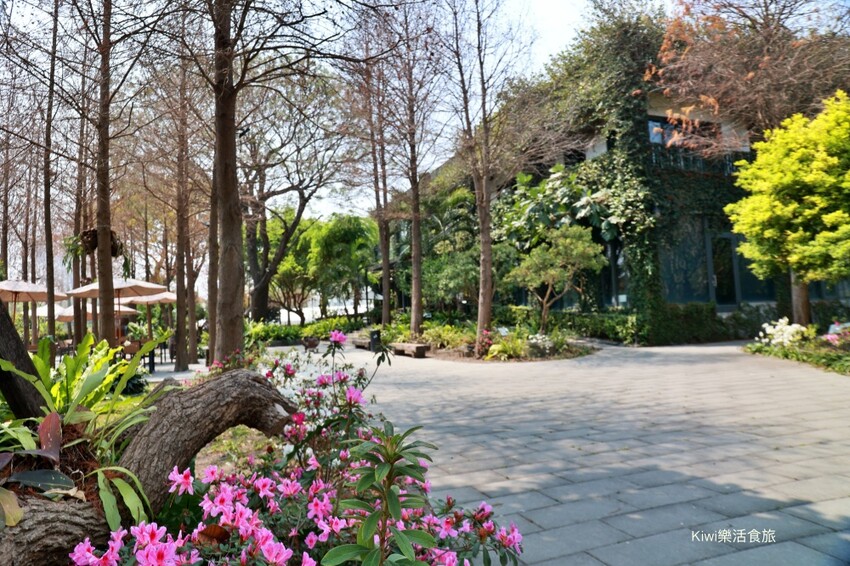 家園餐廳裡有大量的玻璃帷幕設計,不同的季節會有不同的花種可以欣賞,除了落羽松林也種植杜鵑,花開時美不勝收,不管你想白天來或晚上,景色都十分詩情畫意。
