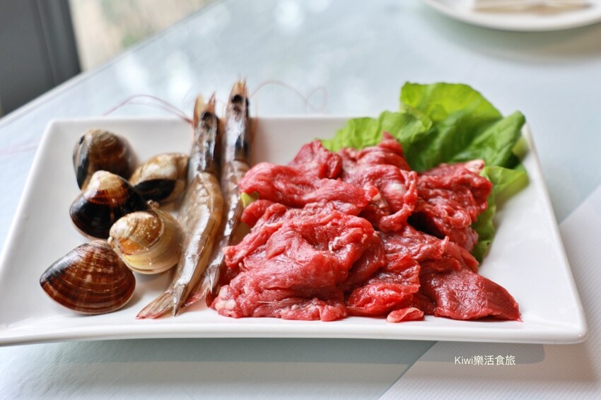 由於我們點餐是野牛鍋,野牛鍋搭配的肉盤是手切紐西蘭PS菲力邊條肉,這讓我有些訝異!跟我們吃的牛排是相同的肉質,老闆也太大器了吧!