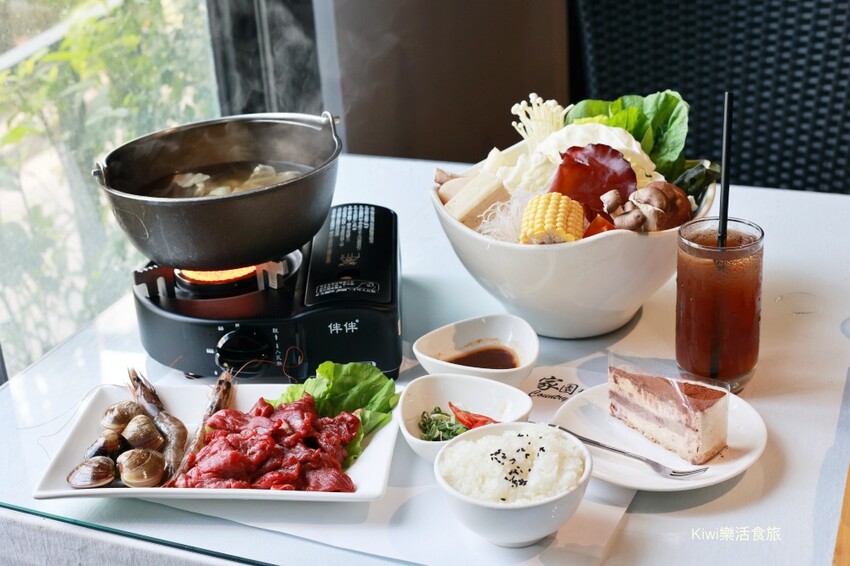 特別推薦給你們家園牛排餐點中的鍋物,野牛鍋附贈的肉是手切紐西蘭PS菲力邊條肉(限量),我們點選柴魚高湯,餐點上都會附上時蔬盤、肉盤、海鮮、米食、飲品跟甜點。
