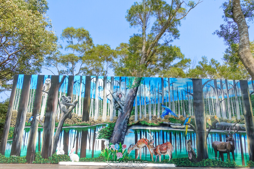 彩繪牆上面好多動物很可愛,