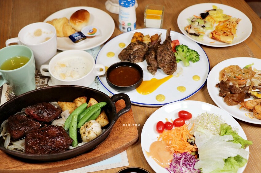 沙拉吧、擔仔麵、麵包、水果、飲品、熱食、湯品、飲料,餐點選擇豐富。