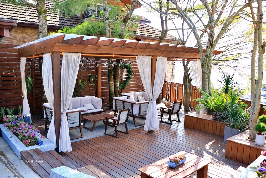 二旁的戶外庭院設計的很網美,入住的房客都會在這裡狂拍留影,也吸引了路過的遊客