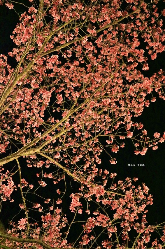夜裡的櫻花跟白日的櫻花拍起來不一樣,夜晚的櫻花好像在發光