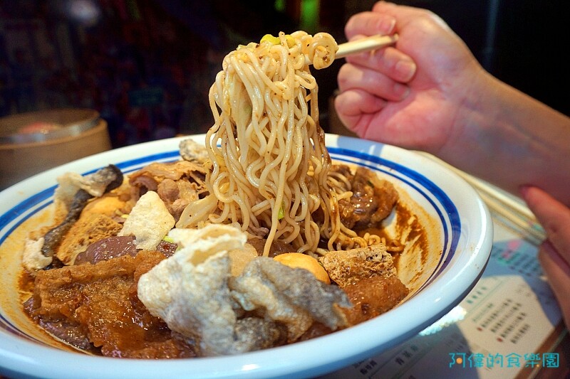 這是一碗超有份量的麵,我覺得至少要兩個人才吃得完吧?而且裡面的料有夠多,像是魚丸、牛丸、豬皮、魚皮、蘿蔔、鴨血,再加了許多片的雪花牛,簡直讓愛吃雪花牛的我食指大動啊!