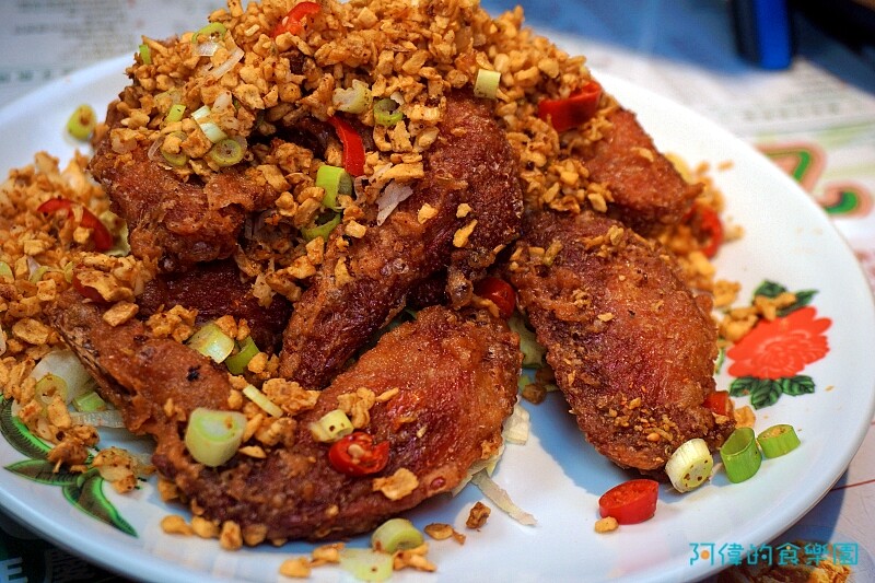 同樣是鋪了滿滿的香辣蒜酥,將整盤炸雞翅妝點得隆重繽紛。