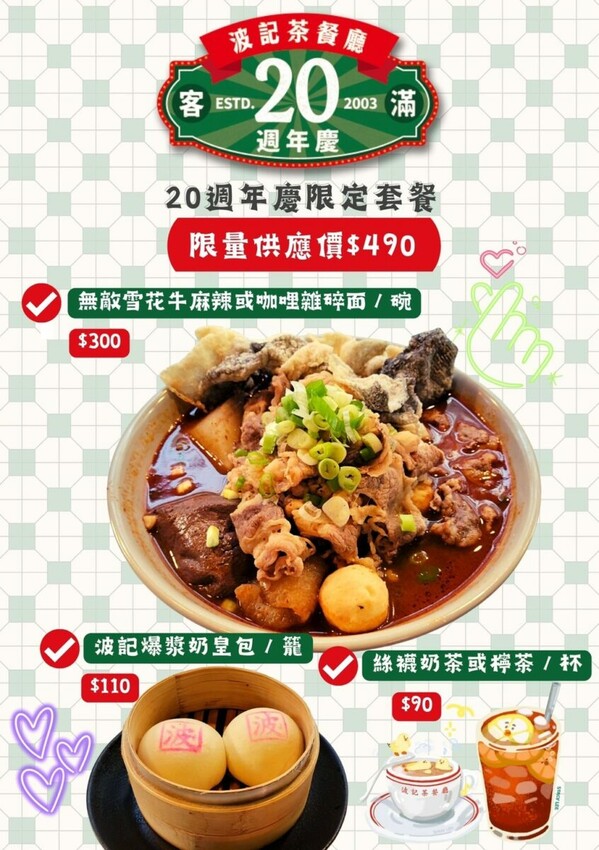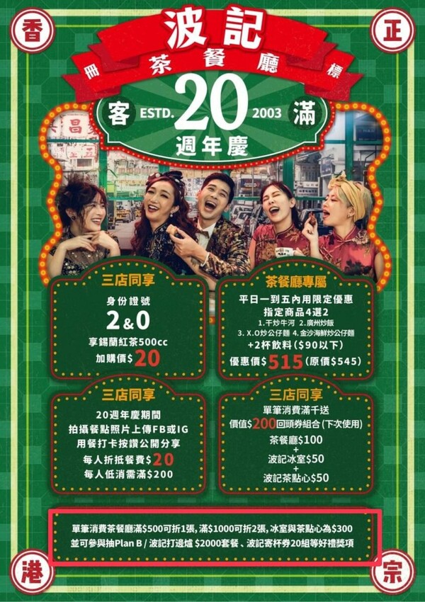 「波記茶餐廳」20週年推出的新菜色讓人更喜歡,照顧到單身或是全家大小都適合用餐,以後可以揪更多人來聚餐了!