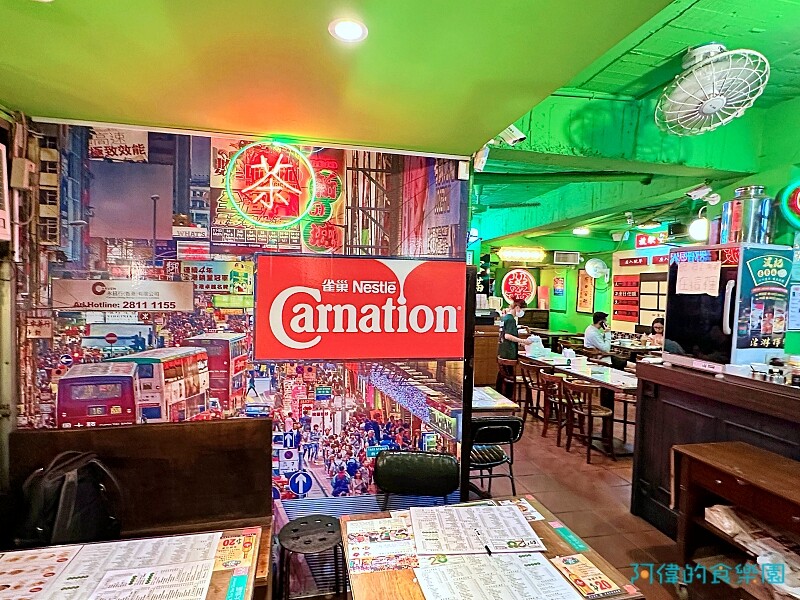 店內以大片鮮綠色為基底,以及超多的香港老明星、電影海報為裝飾。