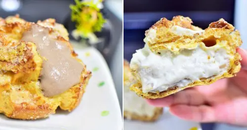 加了柿子果醬和柿子的乳酪蛋糕,底下那一種好像加了一點巧克力,上面的乳酪微酸,有一點像酸奶的滋味,配上帶著討喜甜度的柿子,搭配一小匙的香草冰淇淋,酸甜又不失清爽。