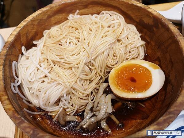套餐搭配的主食可選藜麥雞肉飯或麻油蛋麵線,朋友選了麻油蛋麵線,麵線份量不少,用麻油和特調醬汁下去拌特別香,旁邊附半顆溏心蛋和一些鮮菇。