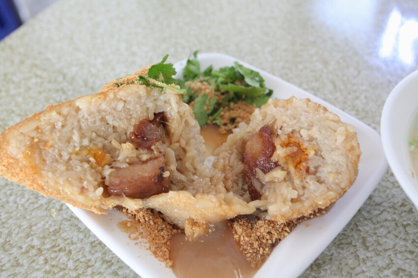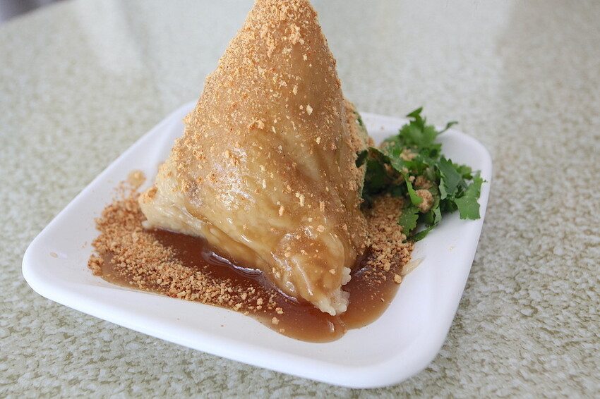 這肉粽老闆會問要不要添加香菜和花生粉,這兩樣食材我都喜歡就選擇添加。