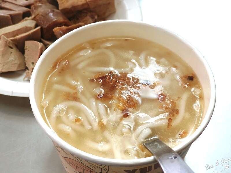 這碗散發出油蔥香的米苔目可真誘人啊,豚肉大骨湯的湯頭,鮮甜可口