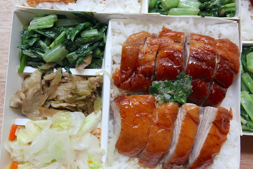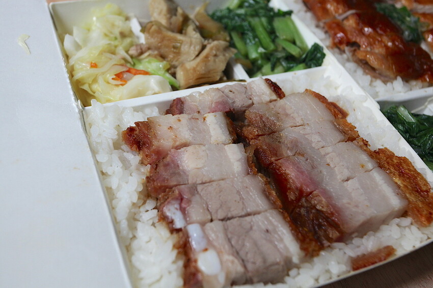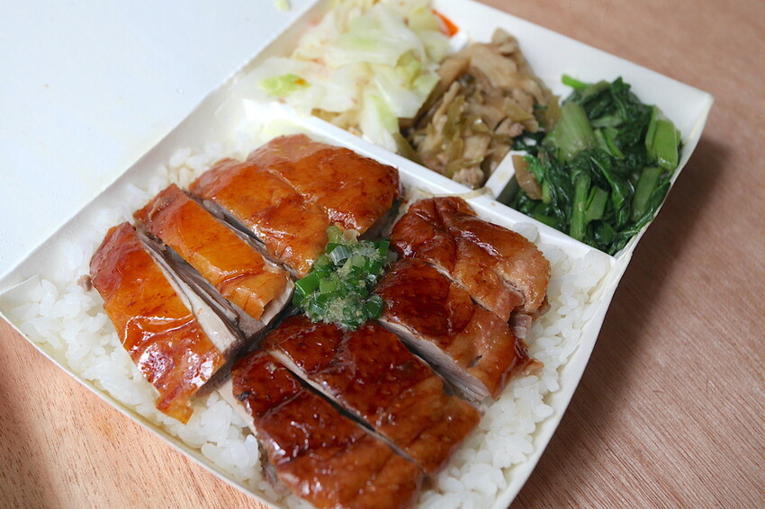 今天外帶三寶飯90元、燒鴨飯90元及脆皮燒肉飯90元等。
