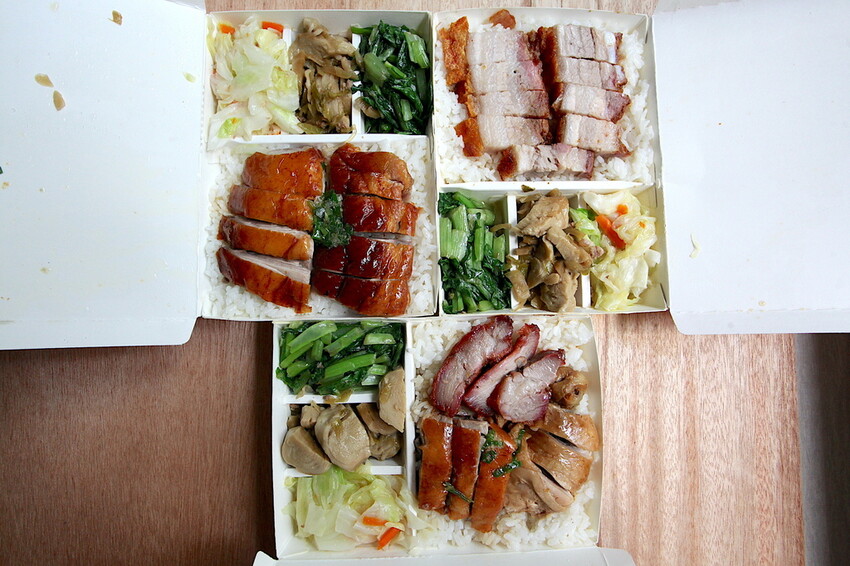 料理台裡面總共有5位工作人員忙碌中,這裡便當可選擇三樣配菜供搭配,只是這些配菜是無法自行選擇。