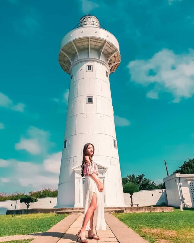 這座高21.4公尺的屏東景點,已成為國際觀光客必來的指標性景點之一。白色的鐵造圓塔,圍牆留有可架槍枝的射擊槍眼,是世界少有也是全國獨一無二的武裝燈塔。而鵝鑾鼻燈塔在1962年改建時換上光力最強的旋轉透鏡電燈,不僅是國內光程最遠的燈塔,照亮著台灣南海地區漁民的回家路,還享有著「東亞之光」的美譽。除了在燈塔前拍照外,也有許多人會選擇到一旁的草地,潔白塔身恰巧將蔚藍天空與青綠地面分開,更顯它的壯觀。