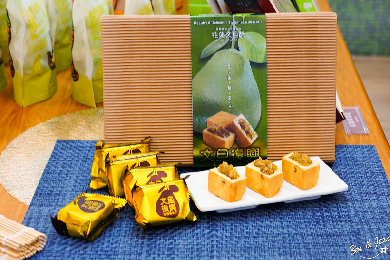 如今花蓮的文旦除了可以食用之外,也可以作成「文旦復興」的文旦糕餅甜點伴手禮…..