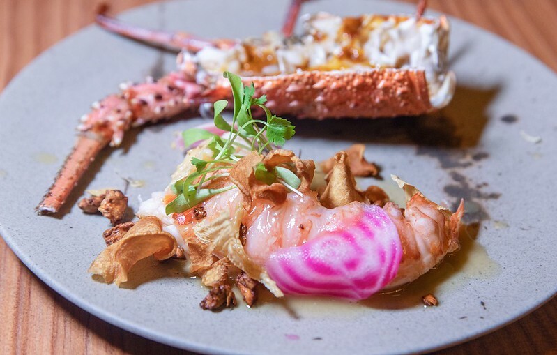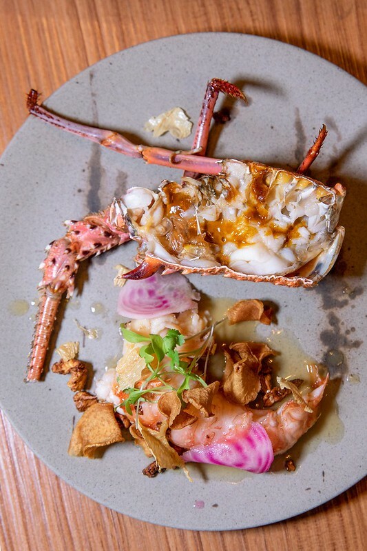 如果吃過水姑娘的朋友就知,這種龍蝦特別Q彈爽脆,肉質札實又多汁,主廚用竹葉青簡單嗆過,用以呼應前面用了竹葉青的前菜,保持水姑娘絕佳的鮮味外,搭配炸過的菜脯、炸過風乾的杏鮑菇,還有吃起來很特別油炸奶皮。沒有過度烹調,也不用醬汁去帶龍蝦的鮮,反而巧妙利用配菜提升了這道龍蝦料理的鮮趣。