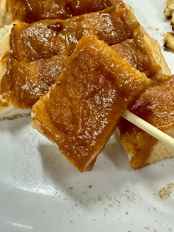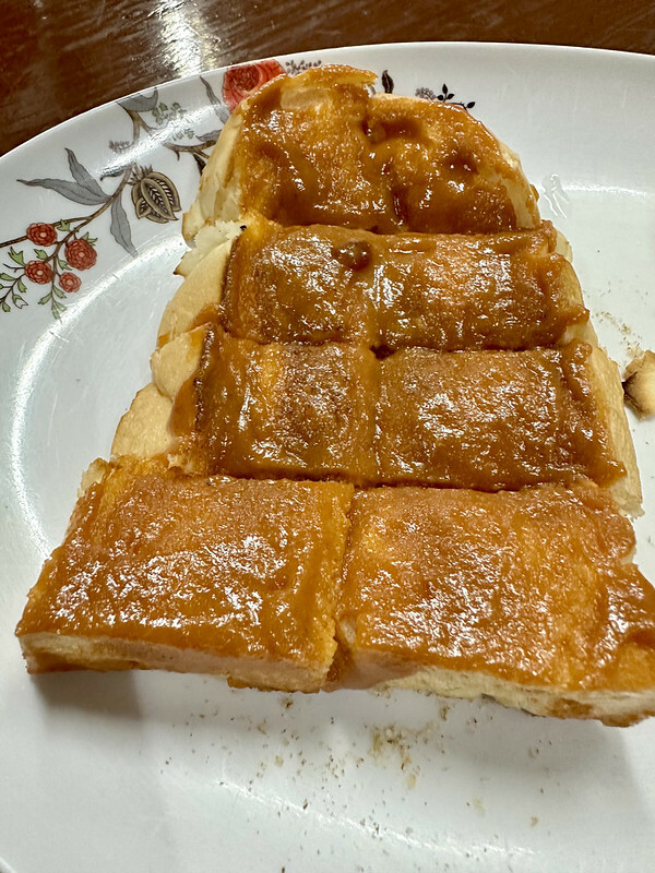 另外一片烤土司上頭的是鴨蛋黃醬,