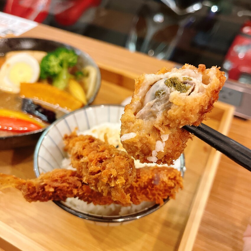 炸蝦和牡蠣的鮮味與咖哩的香氣相互襯托,沾到咖哩後會變得更佳軟嫩好入口