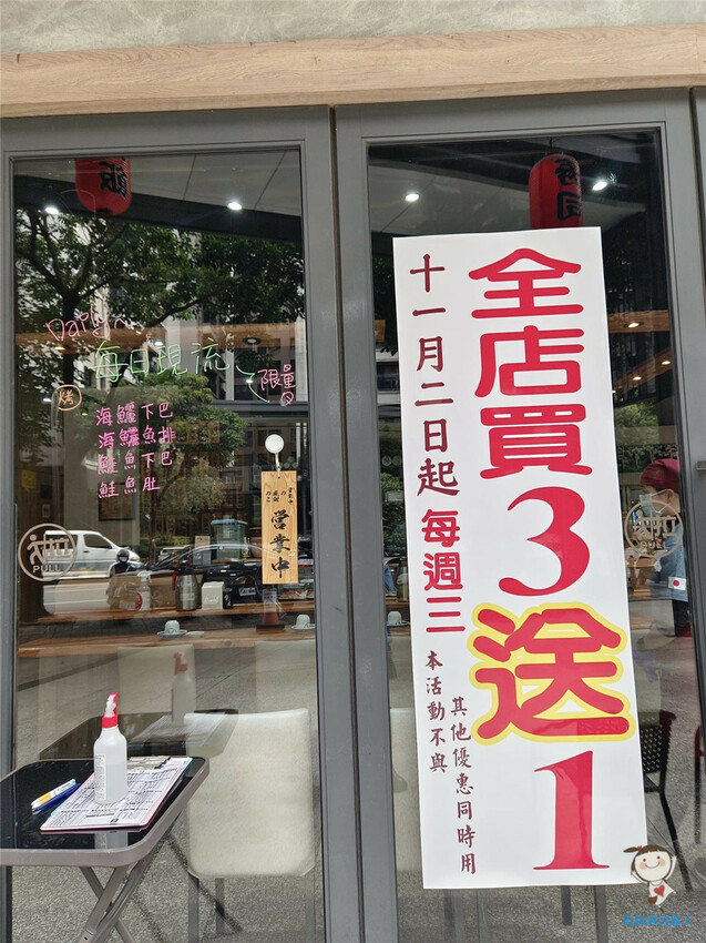 三合屋目前推出的優惠活動:每周三買3送1,只要有4位一起用餐,可享1位免費