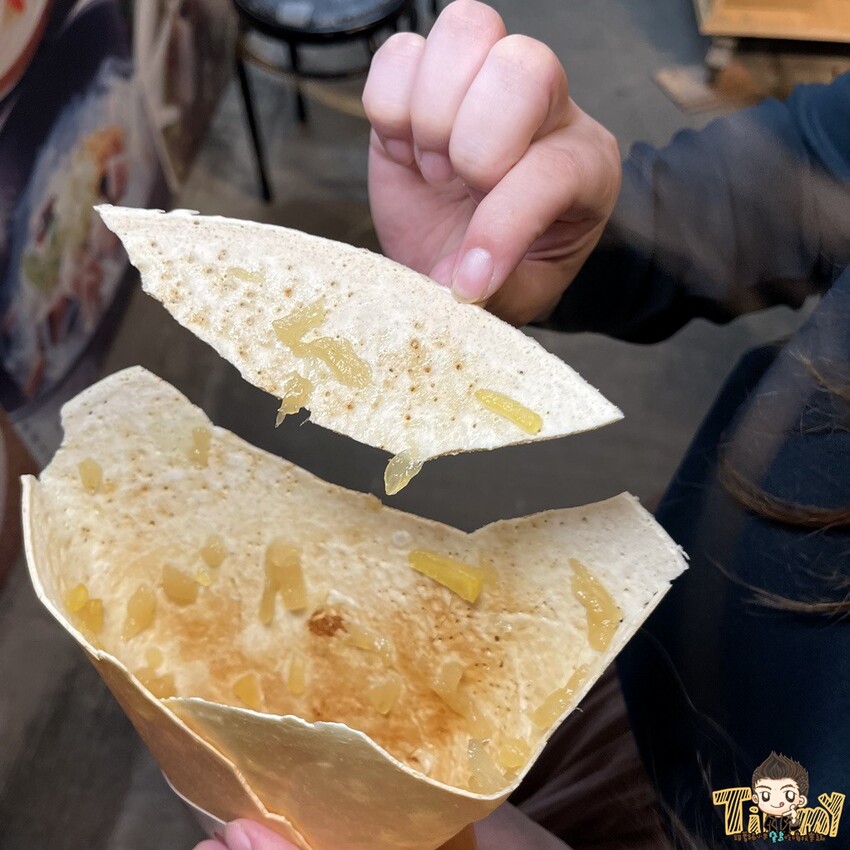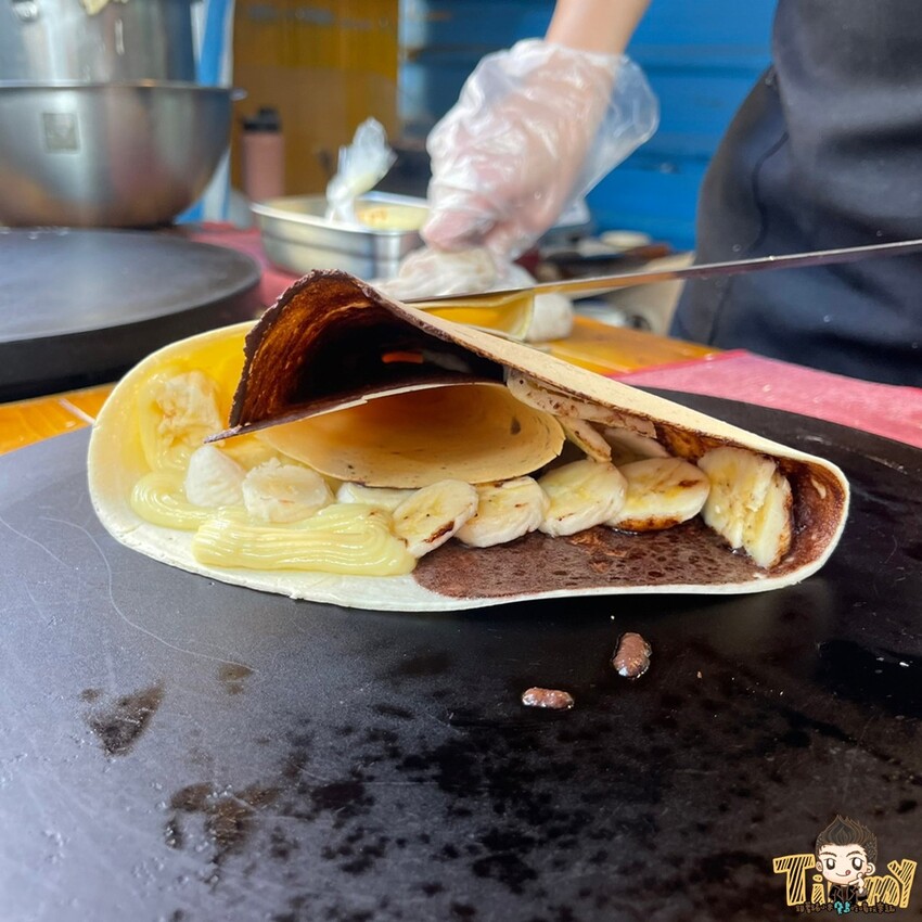 因為經過鐵板的熱度,讓可麗餅烤脆,也讓花生的甜香更為濃郁,再加上黑糖的甜香,如此黃金的組合,喜歡雙口味的朋友可以試試看喔。