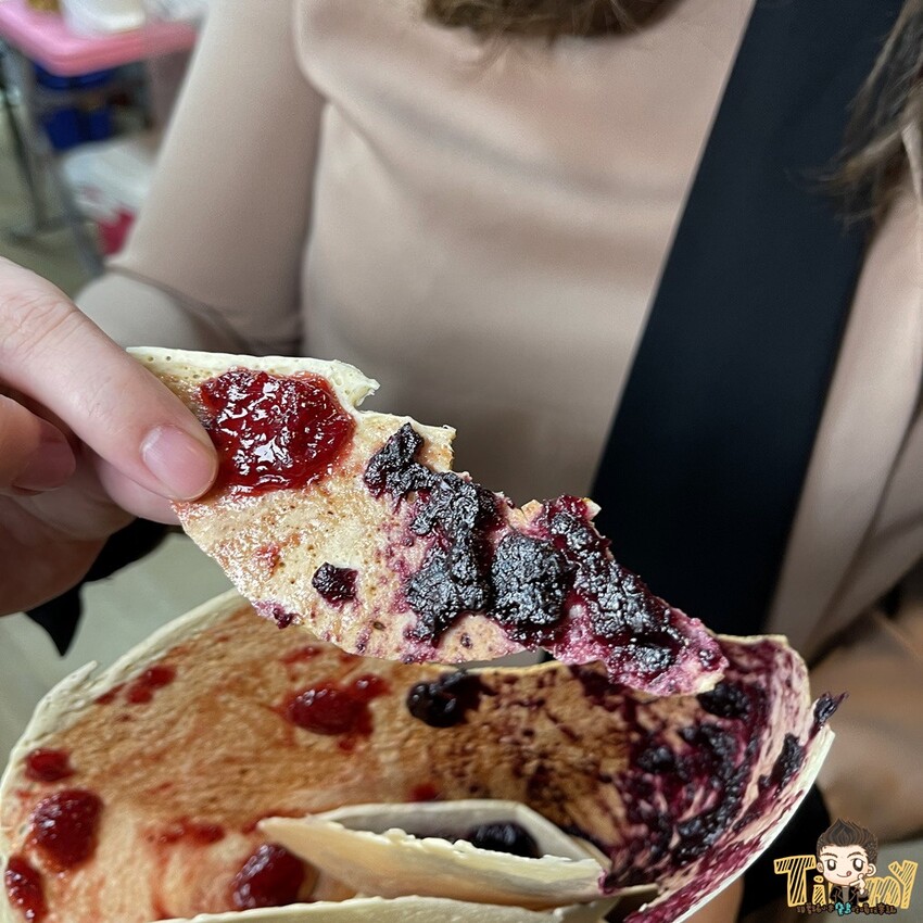 新品草莓&藍莓果醬可麗餅(65元),小米和小結巴都很喜歡