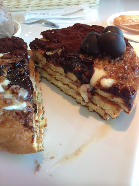 鬆餅由3塊厚片美式鬆餅組成