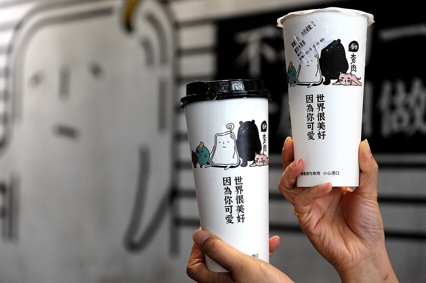 豆豆咖啡-海洋焦糖拿鐵(我要特大杯熱)厭世水果茶(微冰)