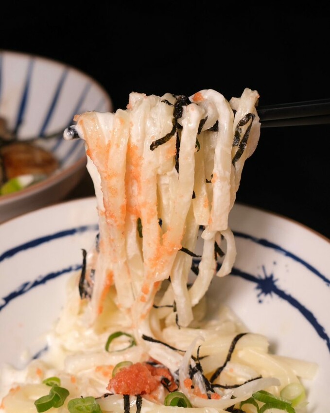 ▼濃郁滿分的明太子白醬烏龍麵,以口感Q彈有咬勁的岐烏龍麵,融入自製的濃厚白醬和明太子,每一條麵都吸附滿滿的醬汁,香濃滋味讓人越吃越涮嘴~