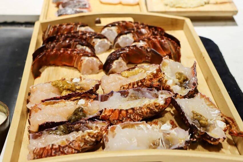 澳洲野生龍蝦水姑娘,龍蝦身體以原味的吃法,龍蝦身體採用加水蒸熟的方式